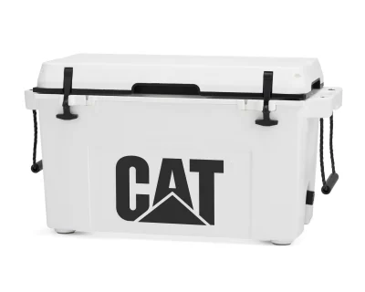Glacière 55 QT de taille réellePeut contenir jusqu'à 60 canettes et 2 sacs de glaceLe logo du chat est embossé dans le plastique de l'intérieur du couvercle et de la face avant de la glacière.