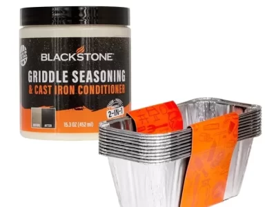 Bundle and save on the two most frequently bought Blackstone accessories: cast iron seasoning and conditioner and rear grease cup liners.