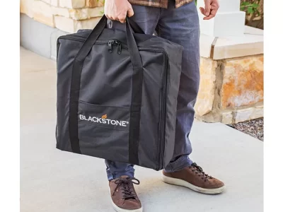 Protect your Blackstone 17 in. tabletop griddle with this custom-designed Blackstone Carry Bag. This tote bag is large enough to fit your Blackstone 17 in. tabletop griddle with a hood or hard cover. Made with weather-resistant canvas and heavy-duty zippers for great durability.