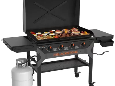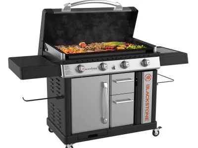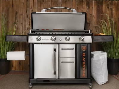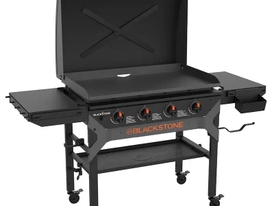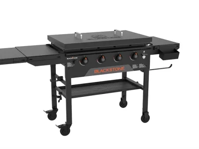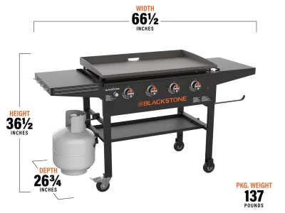 An outdoor cooking station that’s perfect for making mountains of food within minutes. The Original 36-in Griddle Cooking Station with Hard Cover boasts 60,000 BTU’s and a 768 square inches of cooking area. You’ll love using the magnetic strip to hold cooking tools, and the pivoting paper towel holder. Dual folding side shelves create extra prep space without taking up storage space. Crack open a cold one on the featured Blackstone bottle opener and revolutionize your outdoor cooking experience.