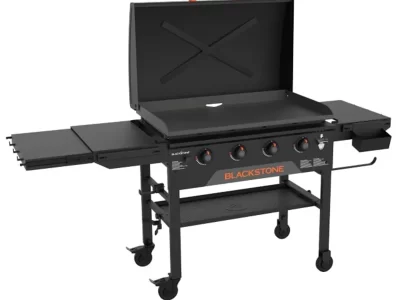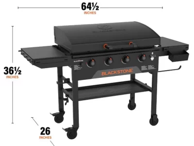 An outdoor cooking station that’s perfect for making mountains of food within minutes. The Original 36-in Griddle Cooking Station with Hard Cover boasts 60,000 BTU’s and a 768 square inches of cooking area. You’ll love using the magnetic strip to hold cooking tools, and the pivoting paper towel holder. Dual folding side shelves create extra prep space without taking up storage space. Crack open a cold one on the featured Blackstone bottle opener and revolutionize your outdoor cooking experience.