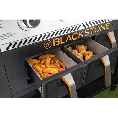 Now In Stock! Limited Quantities Available.Compatible with cover Item# 5005With the ALL NEW Blackstone 36″ Griddle With Air Fryer, you can do it all: bake, sear, roast, sauté, and AirFry. This one of a kind griddle makes cooking the simplest of meals that much more satisfying. The 756-square-inch cooking surface with independent cooking zones provides you with all the room you need to cook meals for large groups of people. With everything you can do with this griddle, you’ll be drooling before you can even take it out of the box. We have included all of your favorite features including a hood to protect your griddle top, accessory storage hooks, accessory storage magnets, and dual folding shelves.