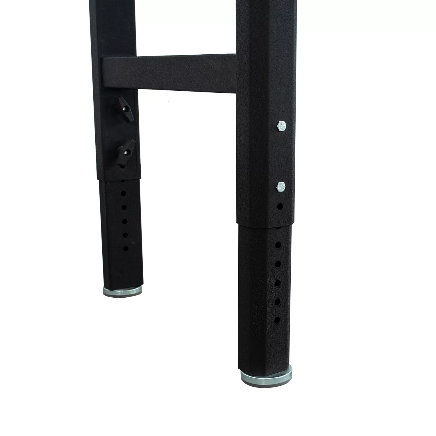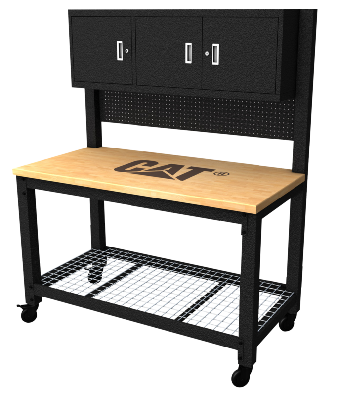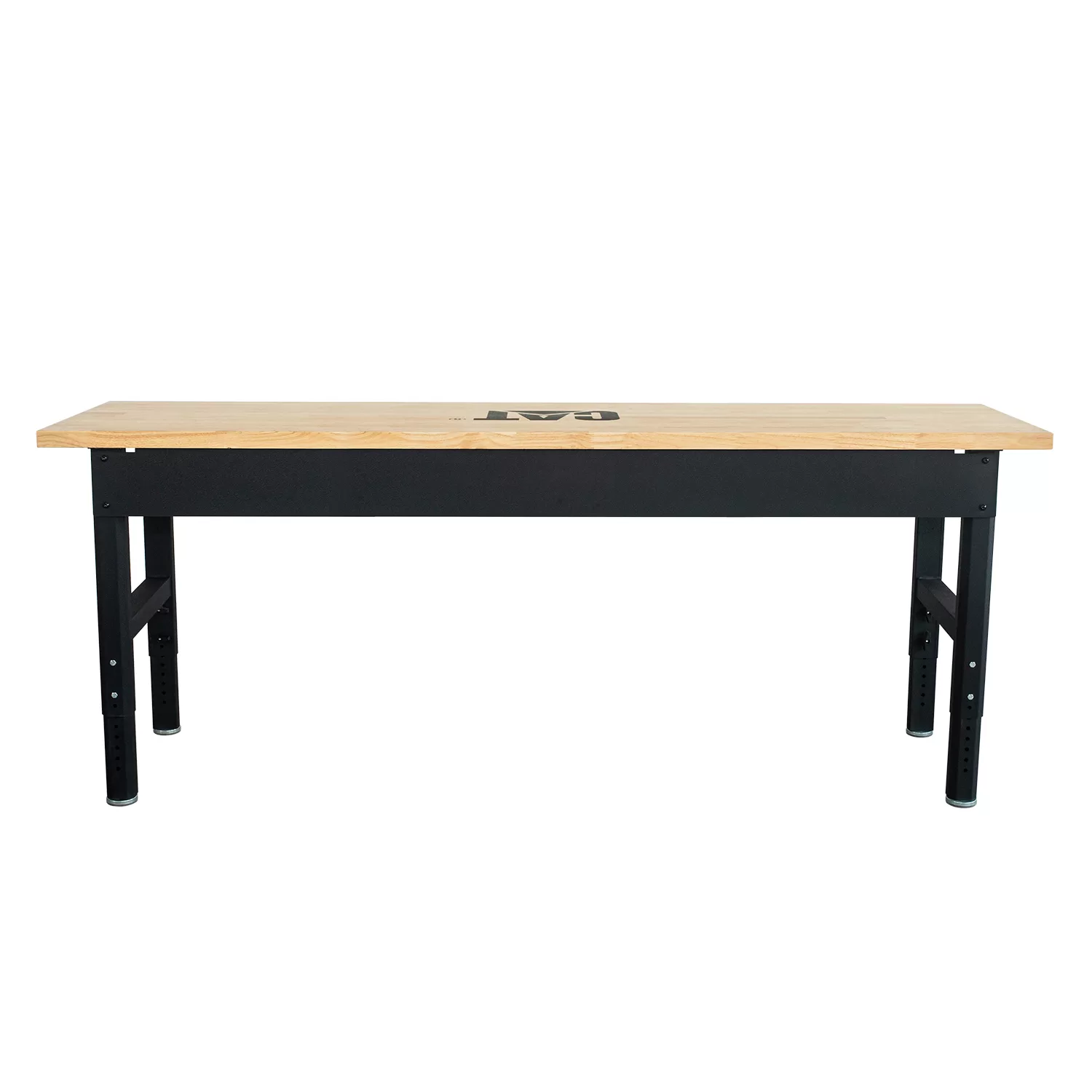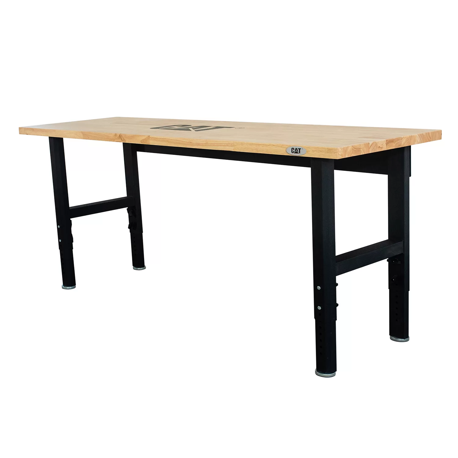 Cat® Heavy Duty Work Benches. With weight capacities of 3000 lbs., these work bench’s will stand up to anything you can stack on them. The Hammered Granite powder coating is durable, scratch/chip resistant, and provides a unique textured finish. Adjust the bench height from 29 in. to 42 in. for a customized fit in your garage, shed, or shop. All Cat® work bench tops are made from highly durable 40mm thick rubberwood.