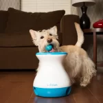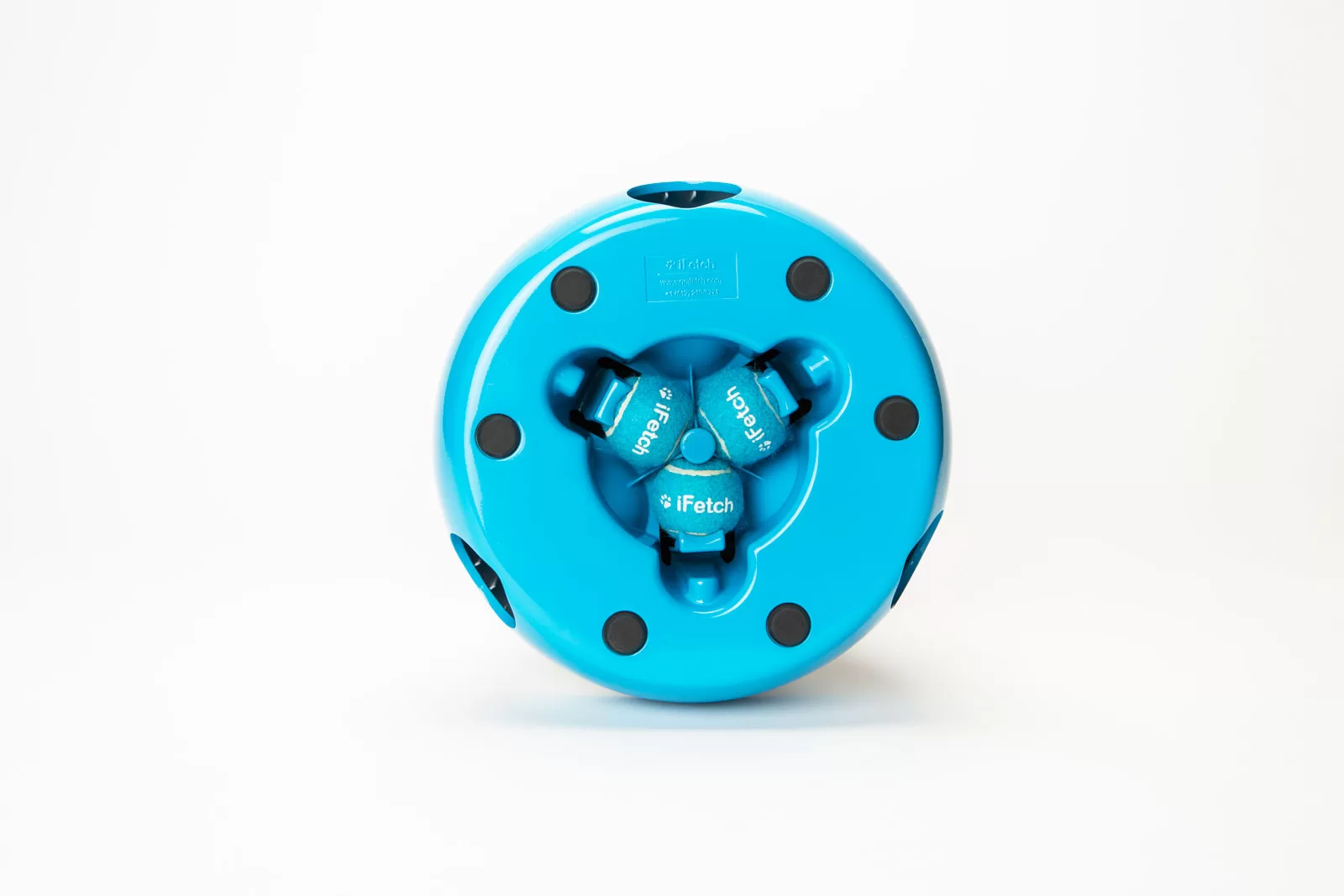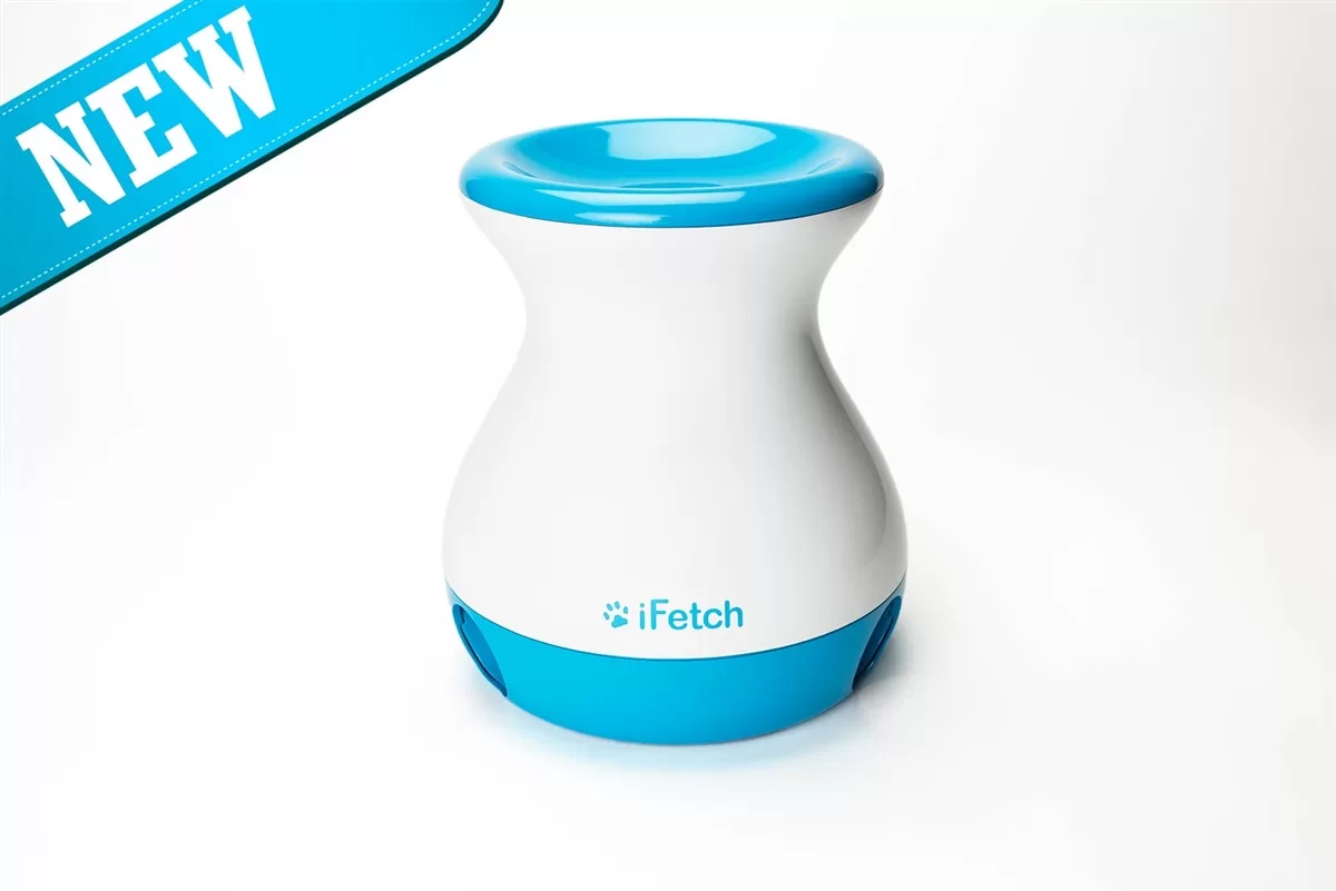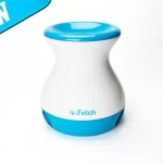 The iFetch Frenzy is an interactive, gravity-driven fetching toy that doesn’t require batteries or power.