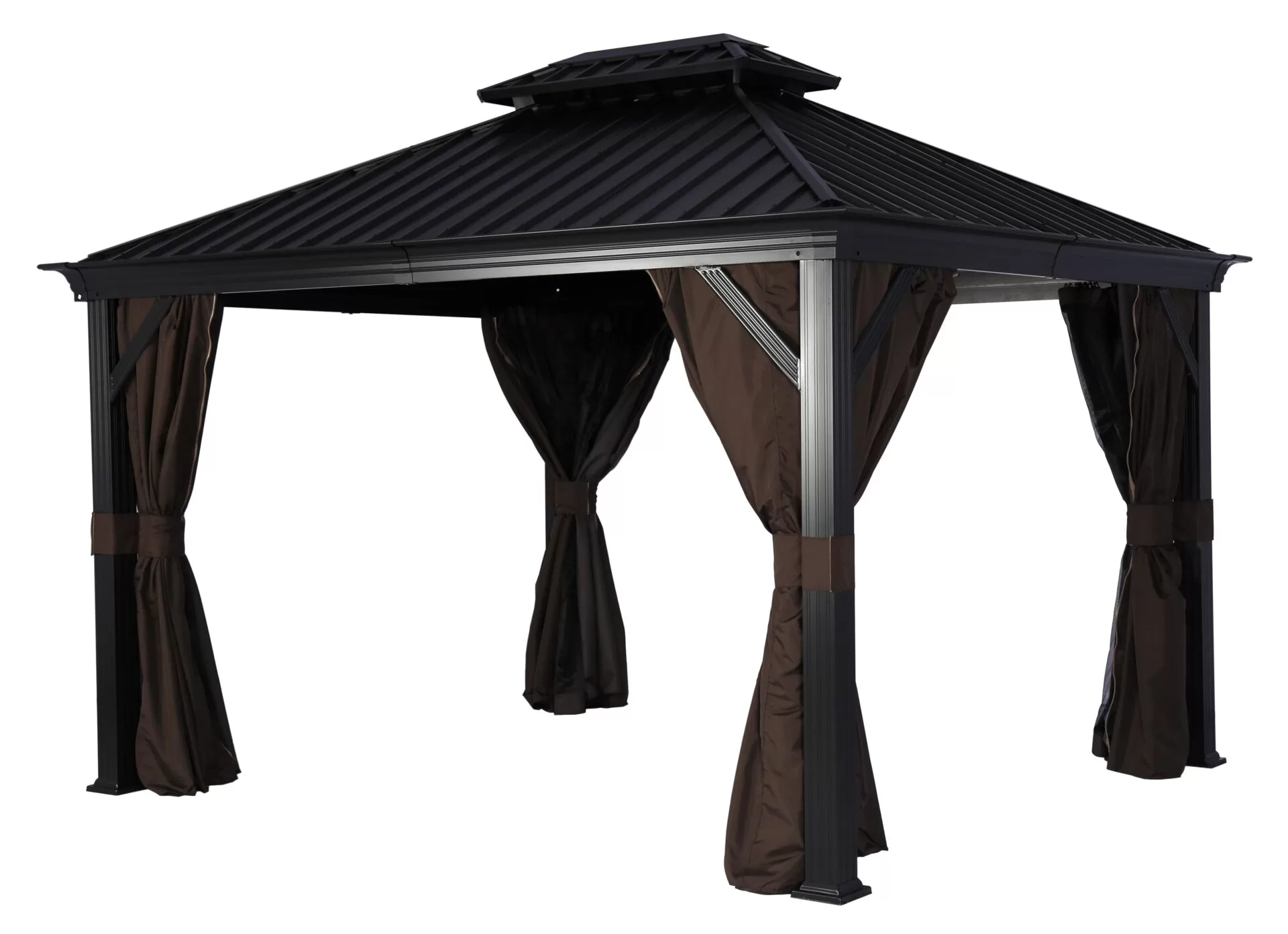 This fully netted and enclosed gazebo creates the perfect all-weather, year-round way to enjoy your backyard. This 10 x 12-ft gazebo by Lake Country Outdoors is made from aluminum and steel with a powder-coated finish to withstand every environment. Classic design meets durable materials in a simple design you’re bound to enjoy. All four walls can easily be zippered to enclose the space or left open for a breezy day outside. This gazebo comes with a 1-year limited warranty.