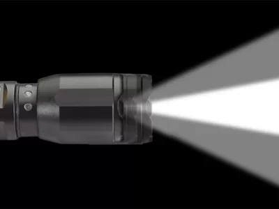 Our CT12520 High-Power LED Tactical Flashlight offers 200 lumens of lighting output with a beam distance of 80 meters. The 2 included AA batteries provide up to 2.5 hours of run time. The light is made of durable aluminum and has a rear-mount, weather-resistant switch.