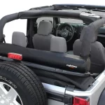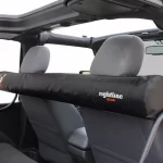 Dimensions: 55” L x 6.5”Weatherproof with welded seams and a urethane coated zipperFits: Wrangler JK (2-door & 4-door), TJ, LJ, YJ, CJStraps to the roll bars, behind the rear seat headrests, or behind the front seat headrests, top-up or top-downColor: BlackIncludes: bag, neoprene window sleeve, and set up guide